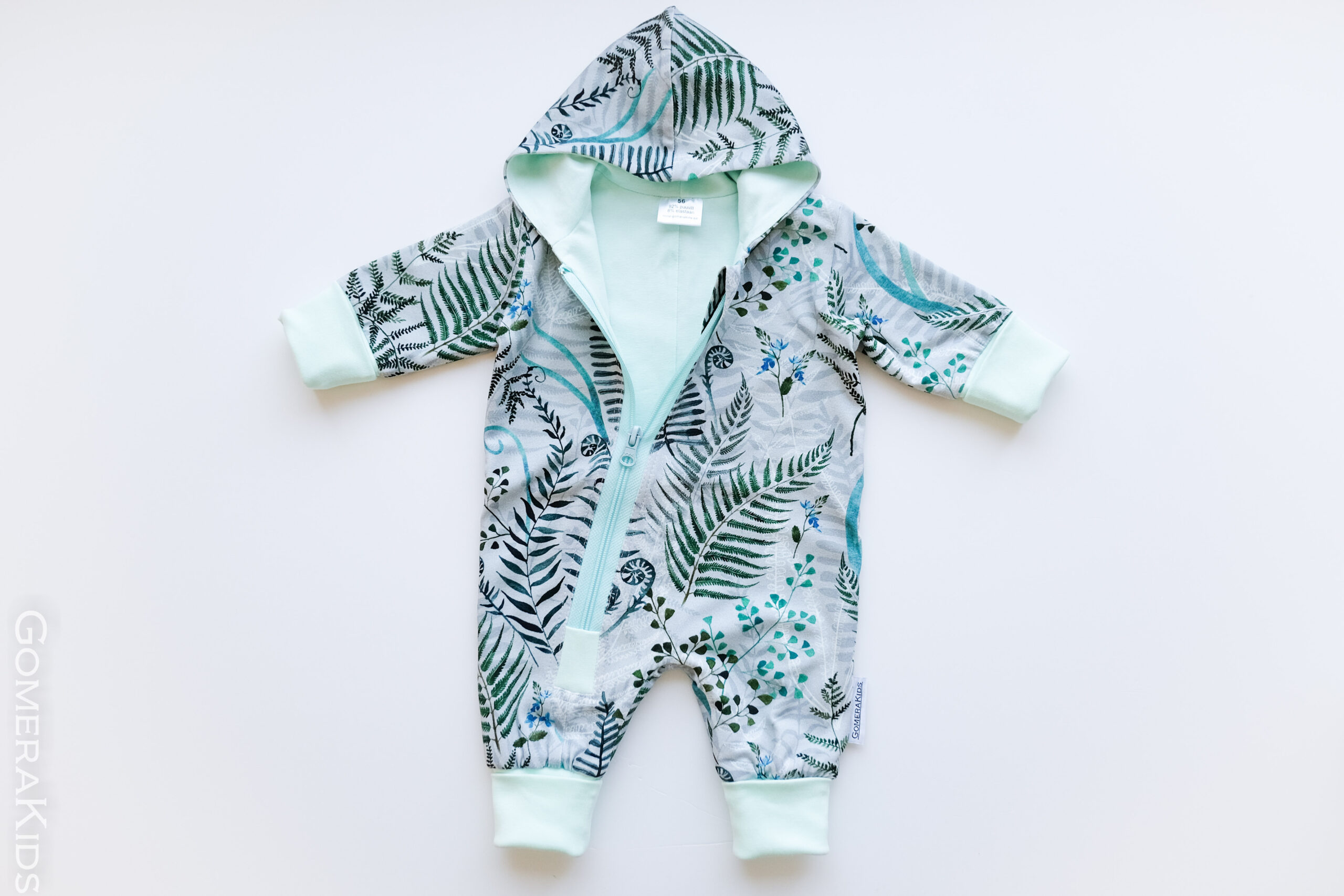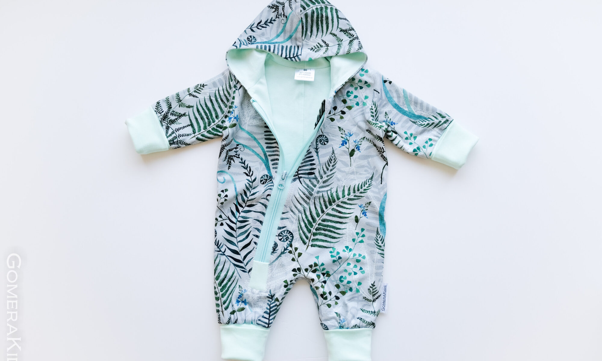 Kombel on pikendatavad käe- ja jalaotsad ja seega on kantav kuni järgmise suurusnumbrini. (nt. suurus 56 kantav kuni 62 suuruseni).
