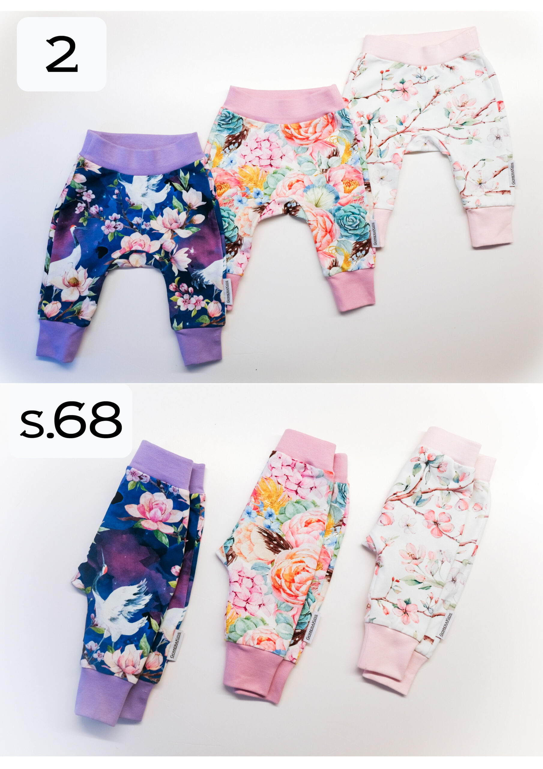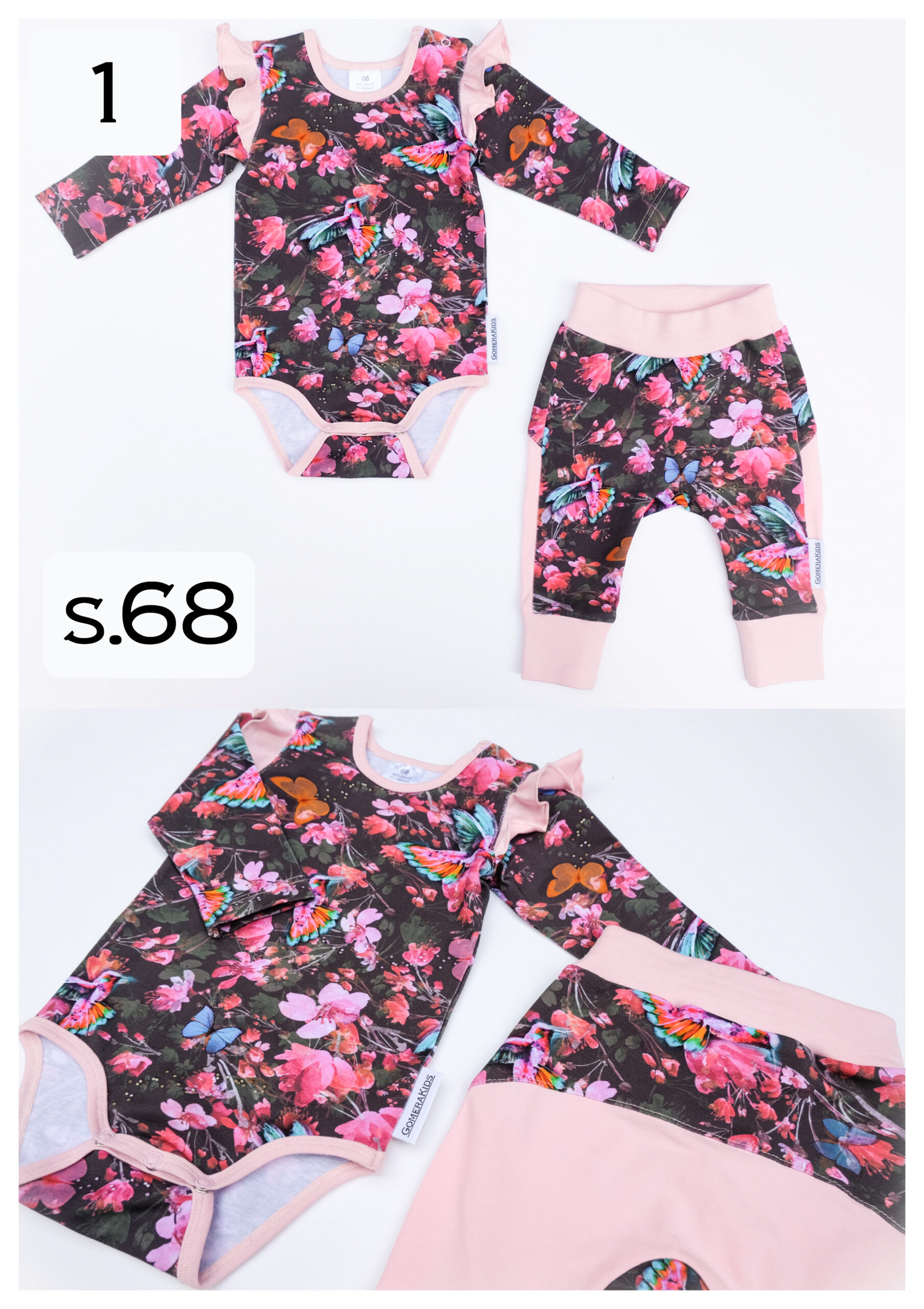 Siit leiad GomeraKidsi mugavad valmiskomplektid ja -tooted suurus 68 ja 74. Komplektid sobivad umbes 5- kuni 9-kuu vanusele lapsele. Tooted postitan paari tööpäeva jooksul!