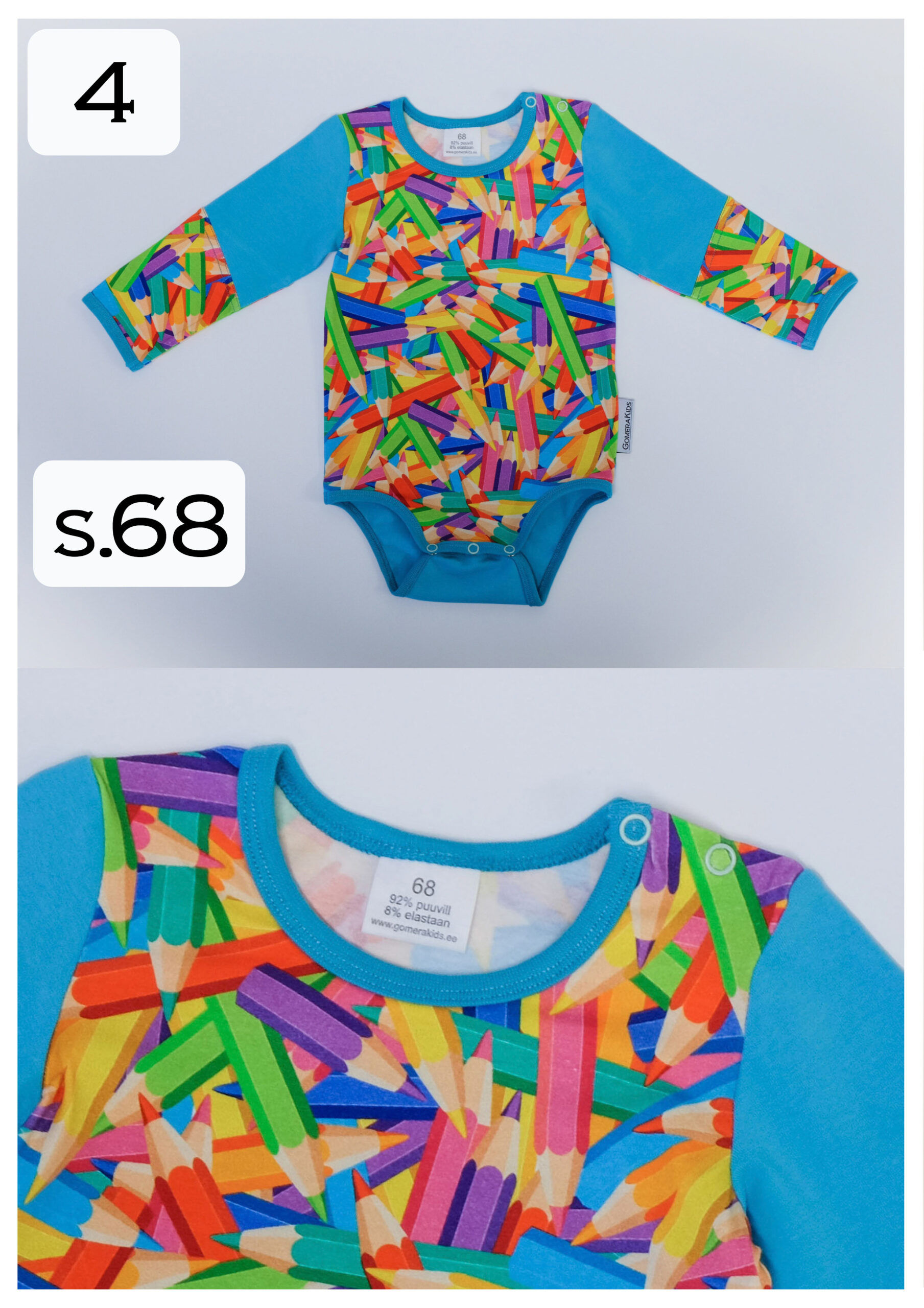 Kangas: Puuvillatrikotaaž 92 % puuvill 8 % elastaan (OEKO-tex 100) - SOODUS! Pliiatsitega õlatrukkidega body: